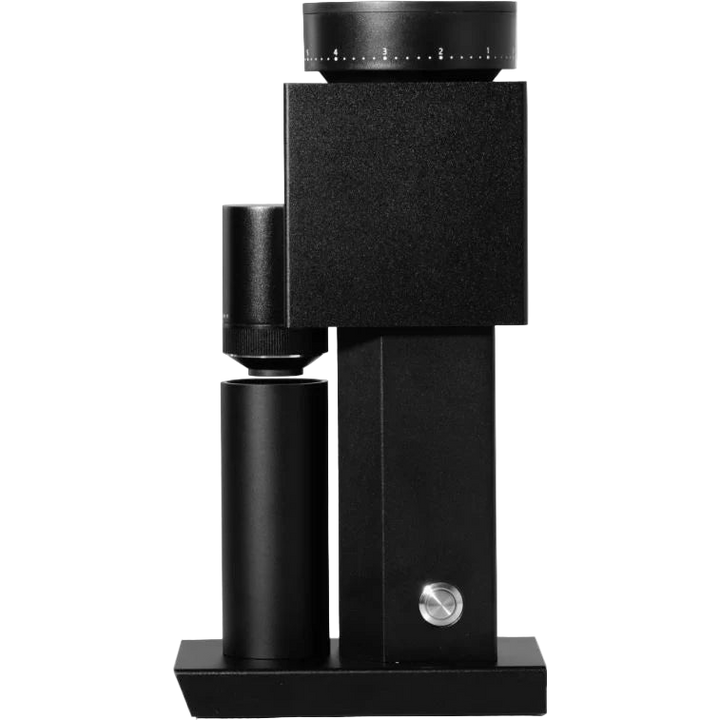 Le boîtier entièrement métallique en alliage d'aluminium, conçu pour minimiser les vibrations, est non seulement robuste, mais aussi doté d'un design épuré et moderne. La chambre de broyage est facile à nettoyer grâce à la bague de meule extérieure amovible. Un système de percussion breveté (Fines Knocker) facilite l'extraction du café moulu, réduisant ainsi l'électricité statique et la formation de grumeaux. Le moulin est équipé d'un doseur magnétique, qui simplifie le processus et permet un dosage précis.